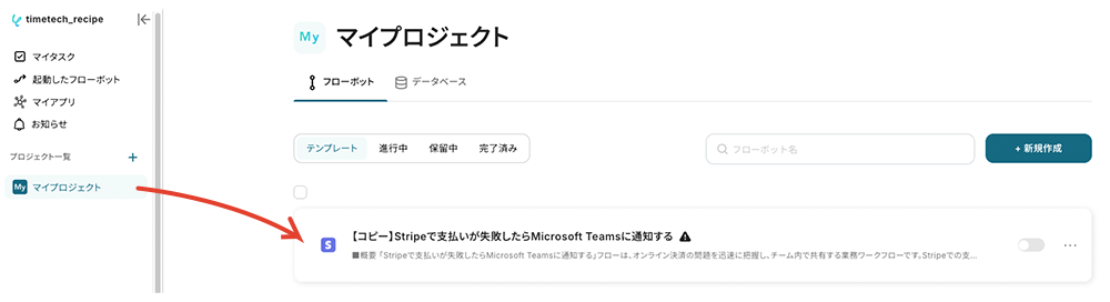 コピーしたテンプレートは、マイプロジェクトに追加されます。マイプロジェクトは左のメニューバーからアクセス可能です。