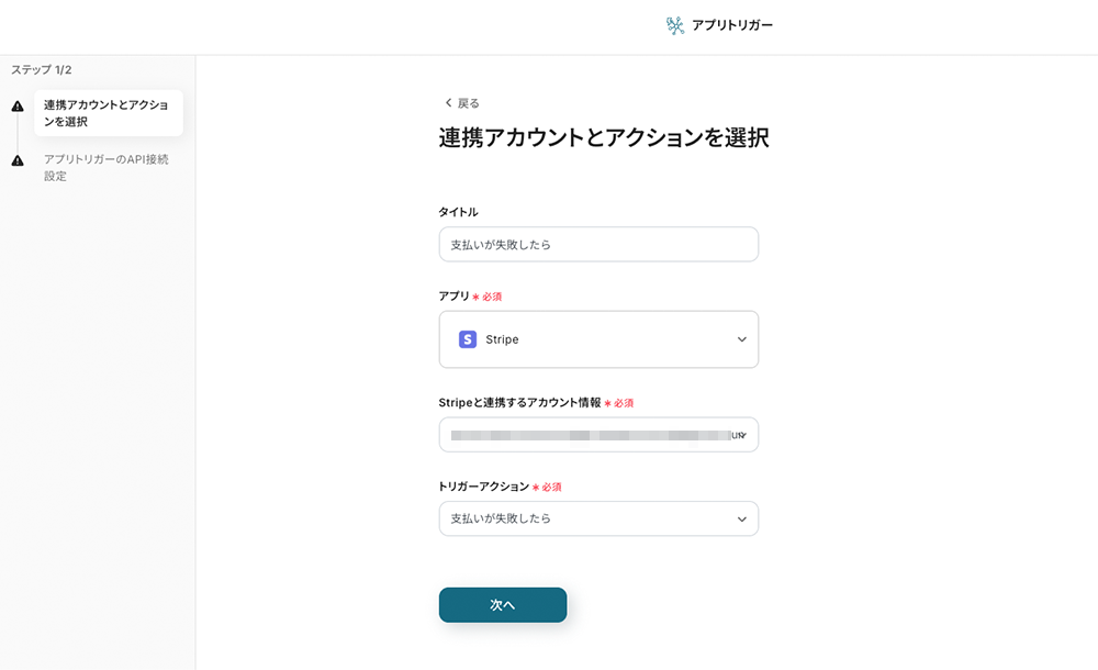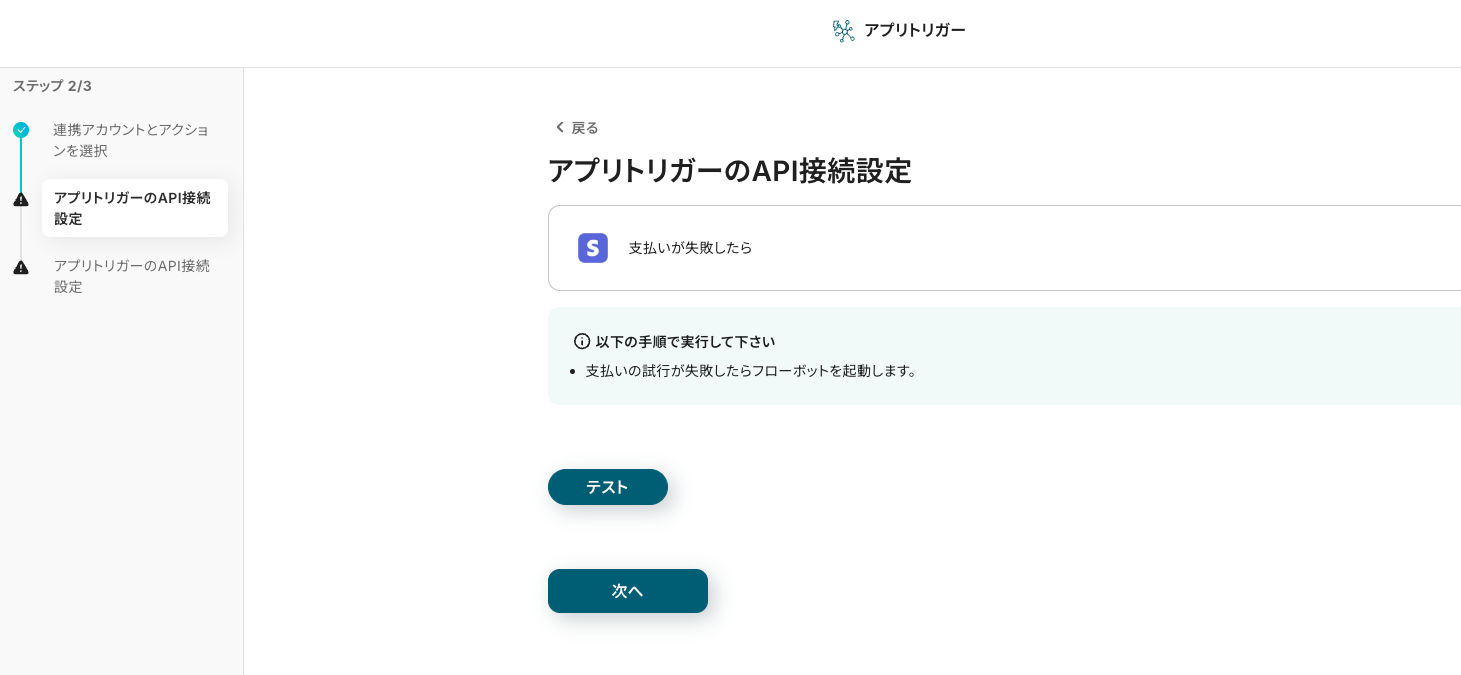 ステップ3:アプリトリガー「支払いが失敗したら」