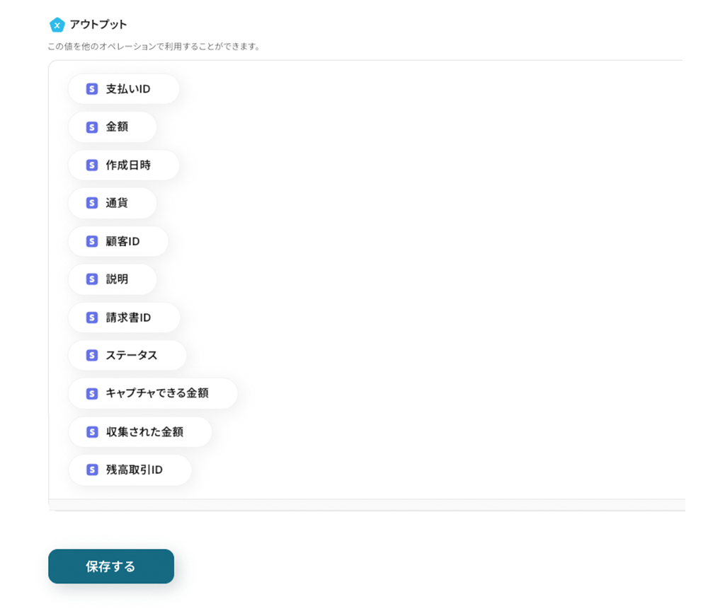 この項目と値をYoomでは「アウトプット」と定義しています。
