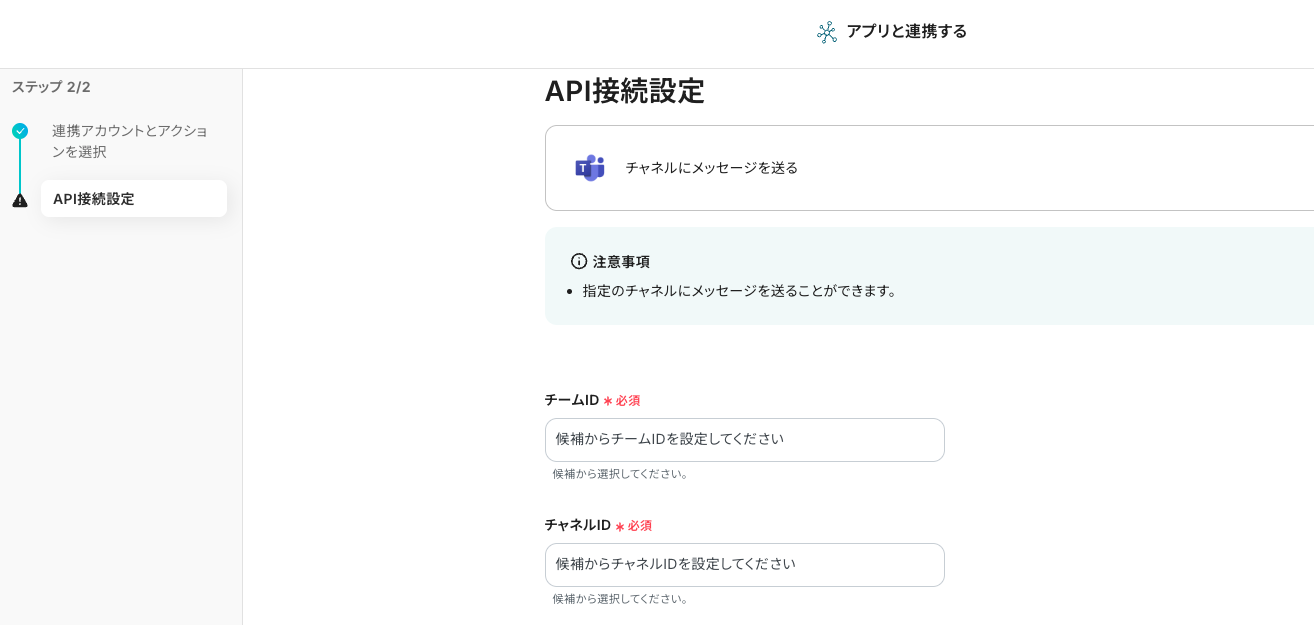 ステップ4:アプリと連携する「チャネルにメッセージを送る」