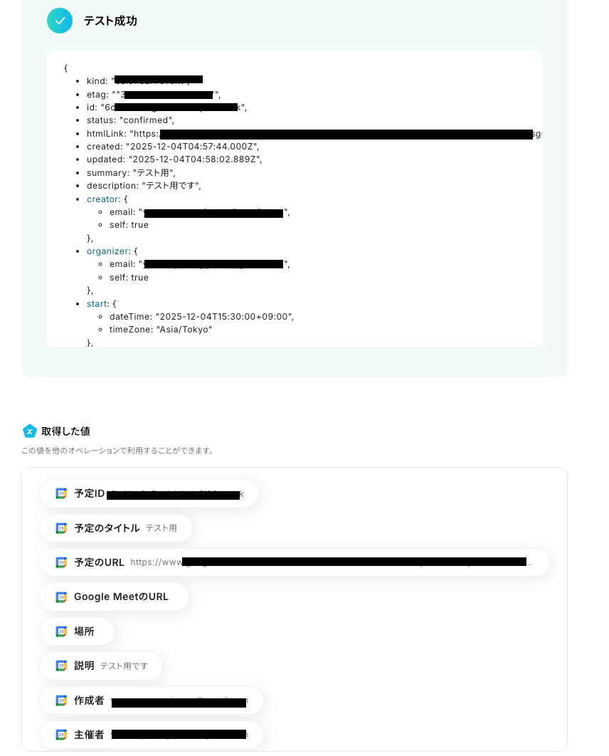 以上で、Googleカレンダーのトリガー設定は完了です!