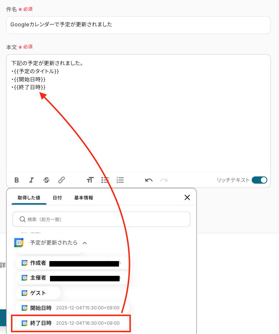 ここでは、Googleカレンダーで予定が更新されたことをGmailで通知する設定を行います。