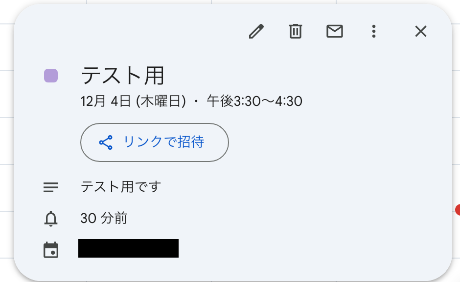ここで、Googleカレンダーの画面に移動して、予定を更新しましょう。