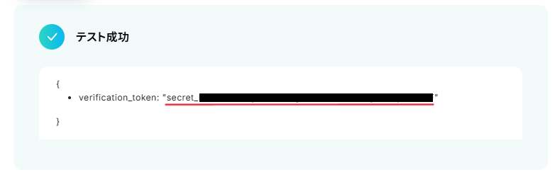 「verification_token: "secret_▲▲▲"」の値のうち、secret_▲▲▲の部分をコピーしましょう。