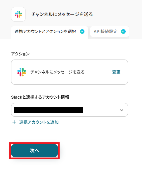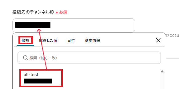 - Slackの「チャンネルにメッセージを送る」アクションで、通知を送信したいチャンネルを任意に設定してください。