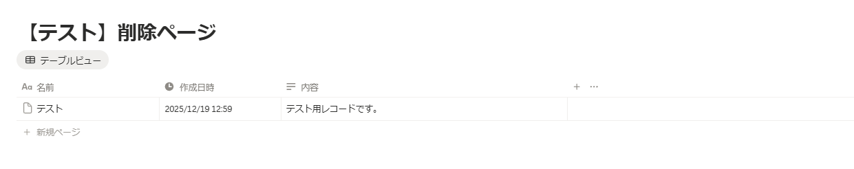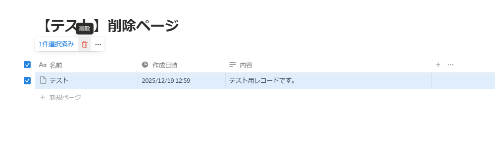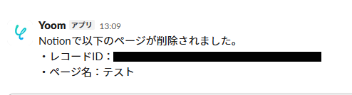 その後、トリガーとなるイベント【ページの削除】をNotionで実行しましょう。