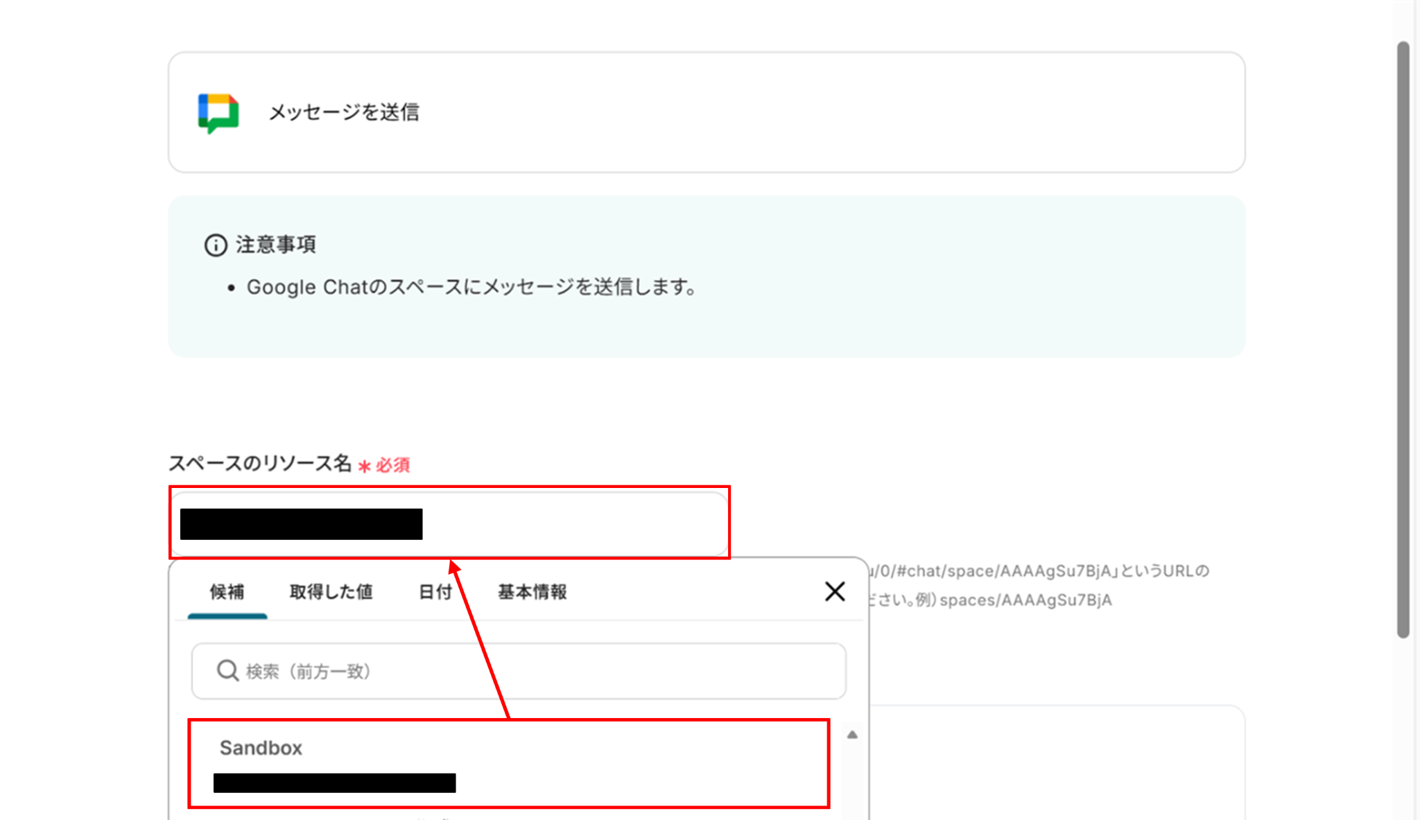 (3)スペースのリソース名は候補から選択します。