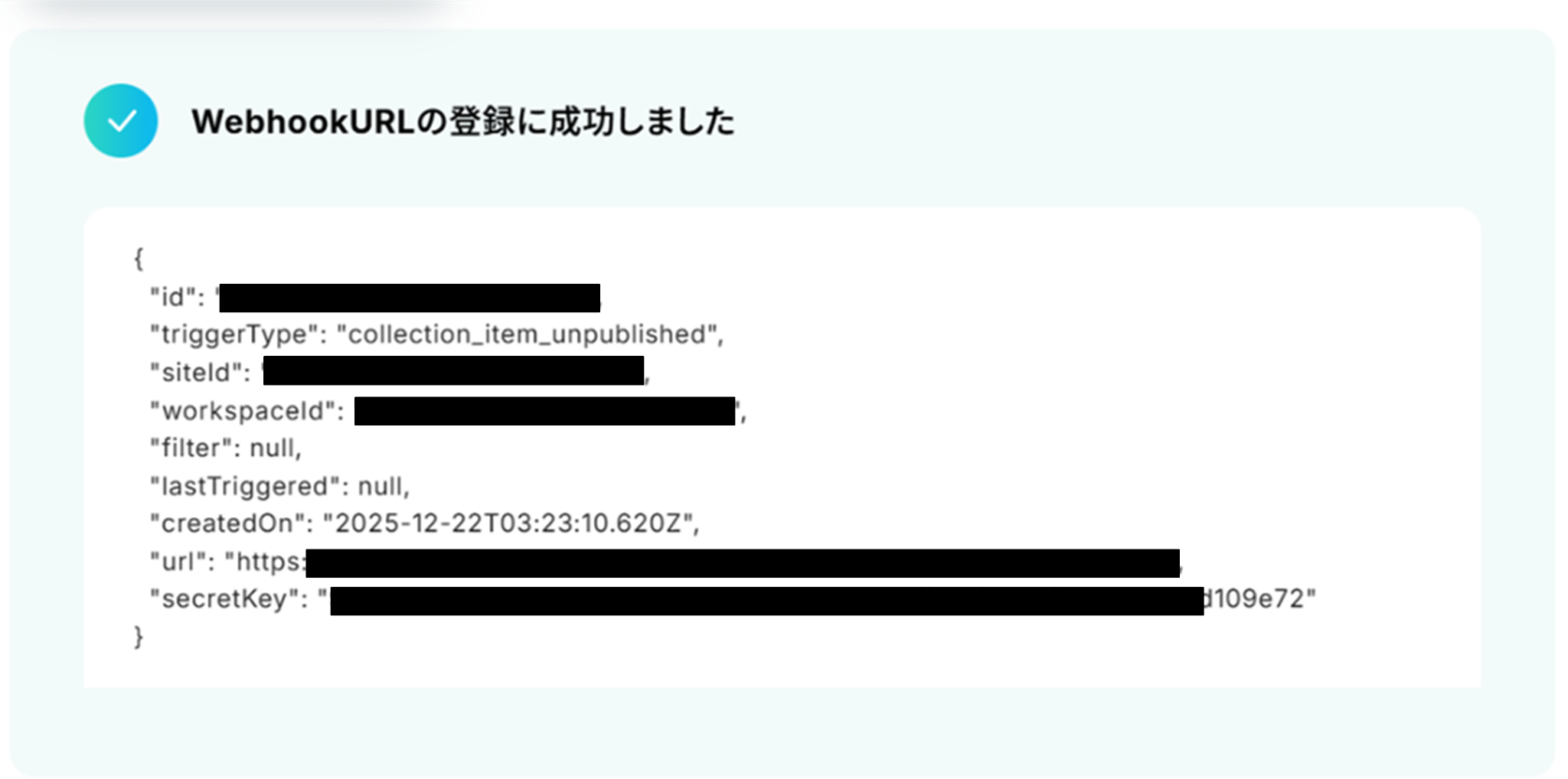 WebhookURLの登録に成功しました!