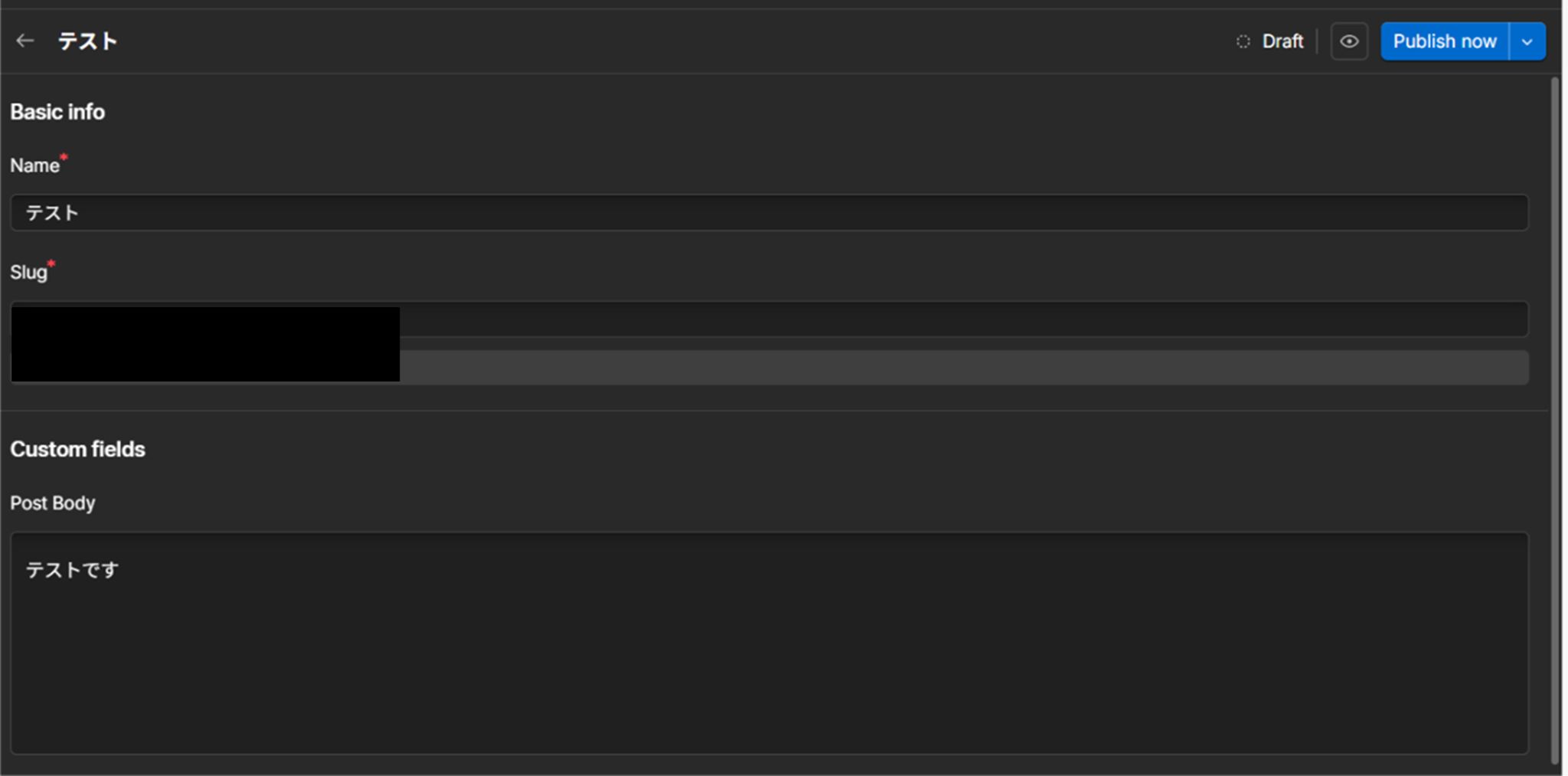 入力が終わったら「テスト」をクリックします。