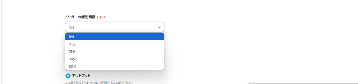 トリガーの起動タイミングは、5分、10分、15分、30分、60分のいずれかを選択することが可能です。