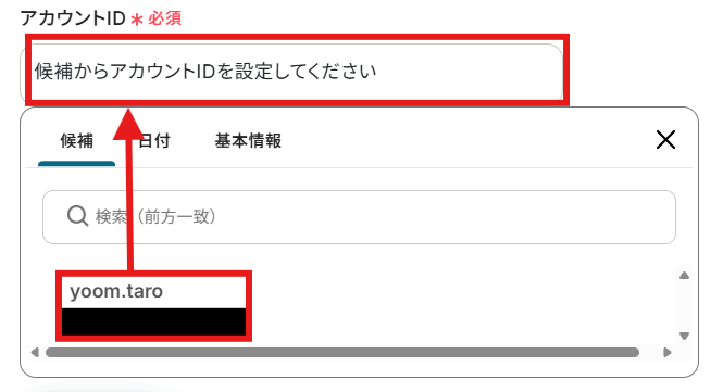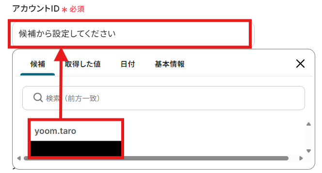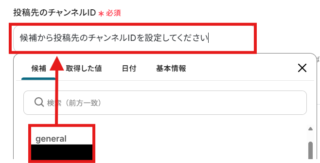 「投稿先のチャンネルID」を候補から選択しましょう。
