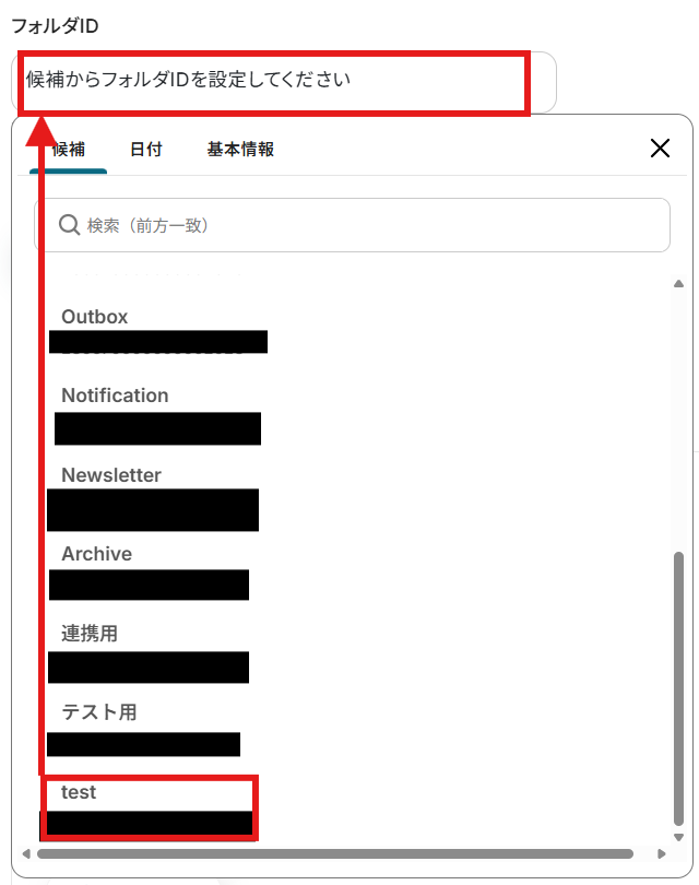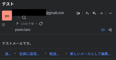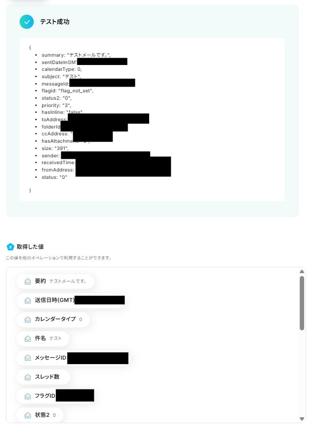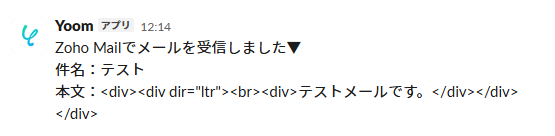 「フォルダID」に設定したフォルダにテスト用としてメールを送信しましょう。