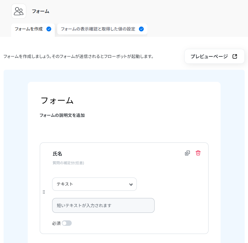 ※フローボットの設定が完了後、トリガーをONにすると、回答ページが有効になりますのでご確認ください。