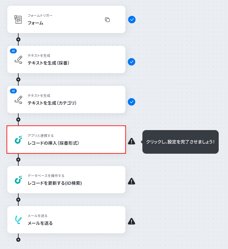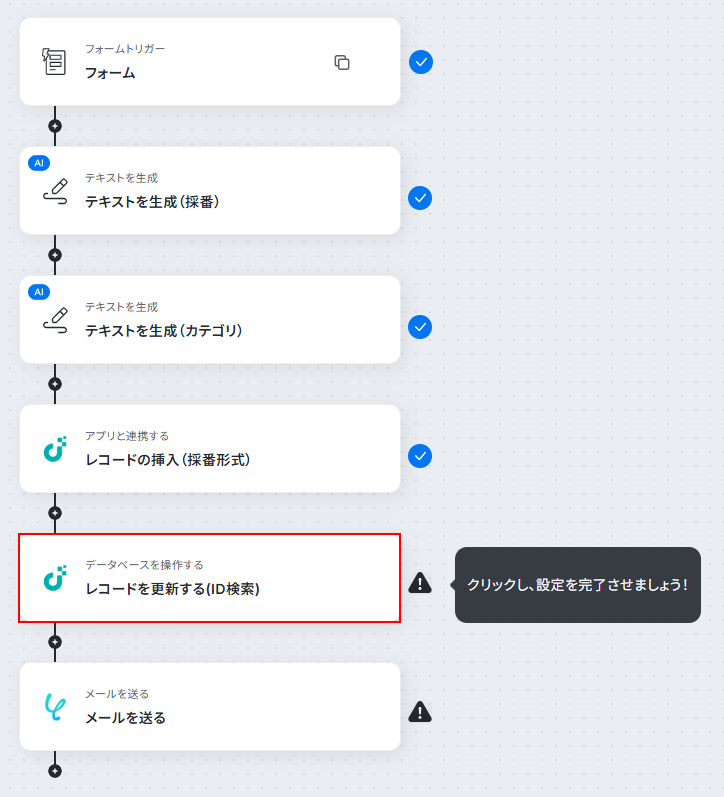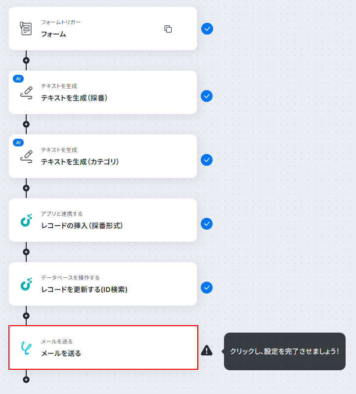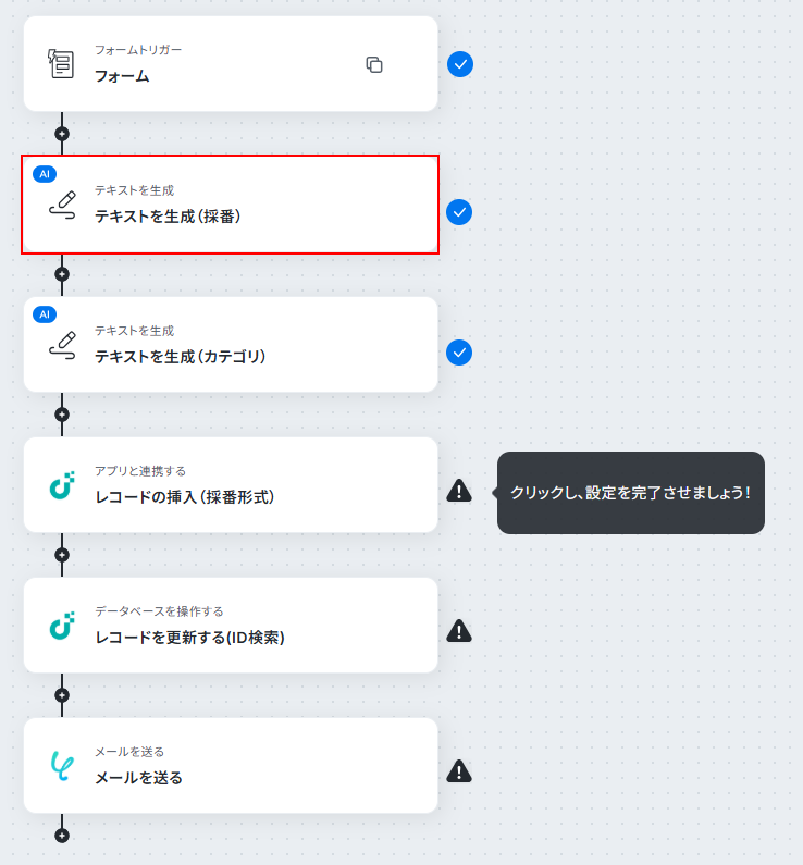 このステップではレコードに登録する問い合わせIDを自動で生成します。
