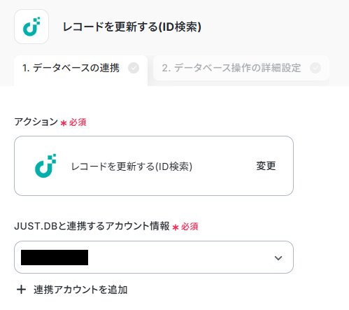 レコードを更新する(ID検索)をクリックします。