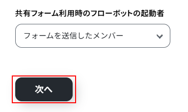 次に、共有フォーム利用時のフローボットの起動者を設定します。