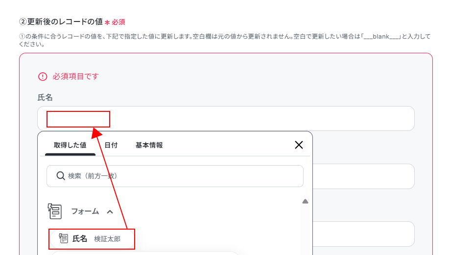 次に、更新後のレコードの値を設定します。