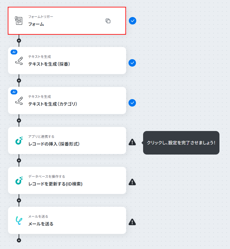 それではここから代表的な例として、フォームに回答が送信されたら、JUST.DBに採番形式のレコードを自動で挿入し、関係者にメールで通知するフローを解説していきます!