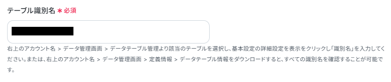 テーブル識別名も同様に、注釈を確認しながら設定します。