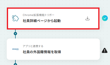 - 次に、トリガーでHRMOSを選択し、「社員詳細ページから起動」アクションを設定します。
