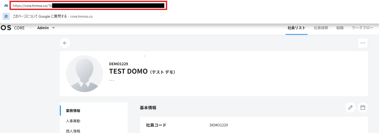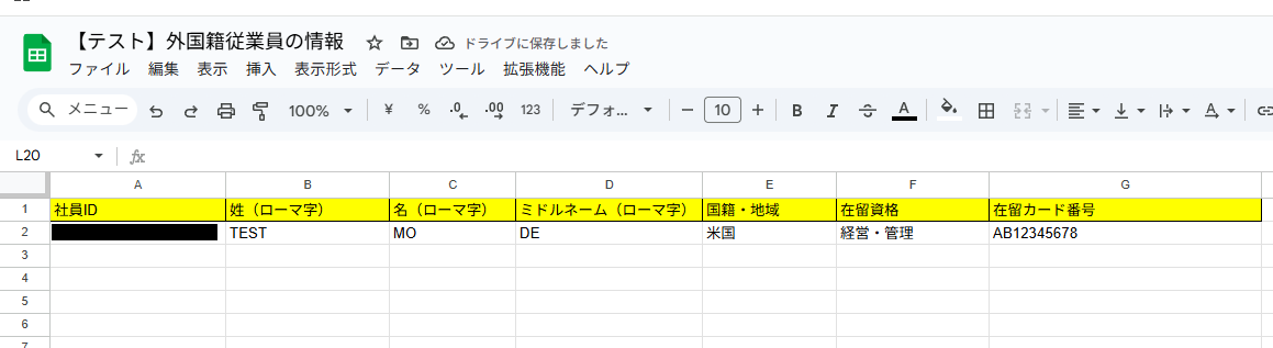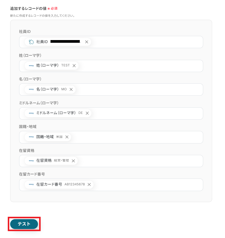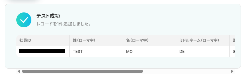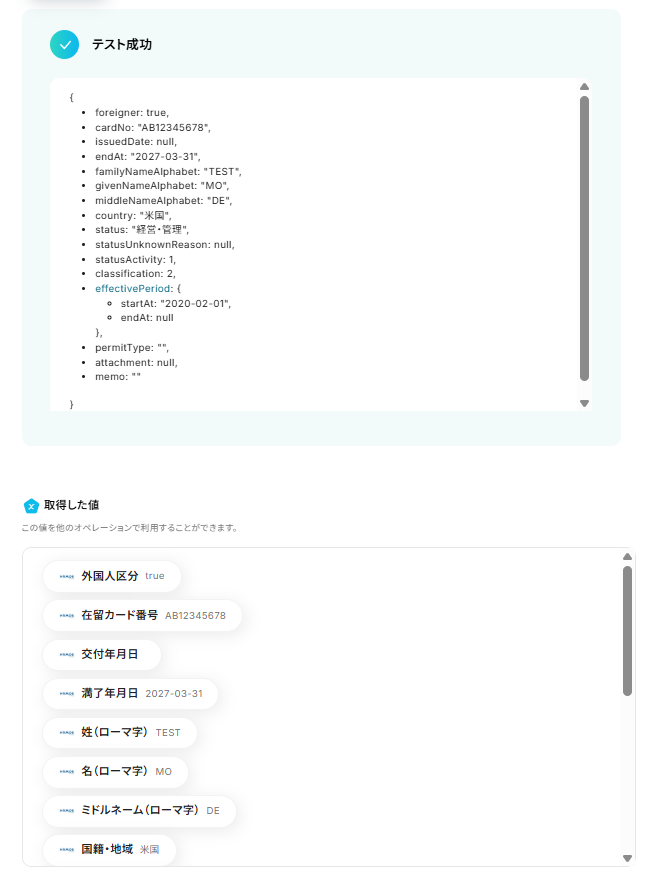 テストに成功すると、該当社員の外国籍情報を取得できます。