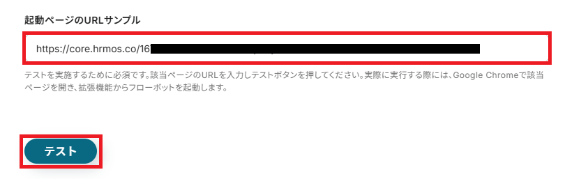 「起動ページのURLサンプル」に、テストを実施する社員詳細ページのURLを入力しましょう。