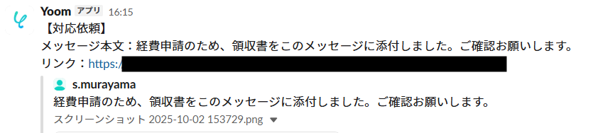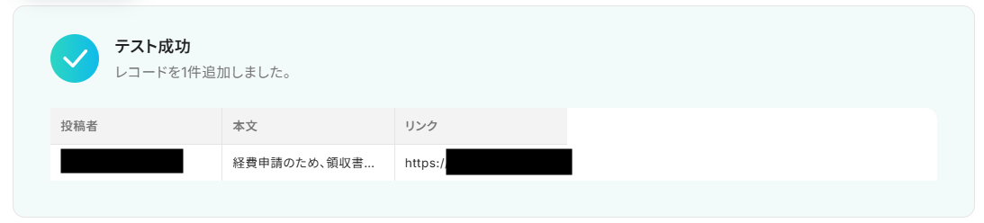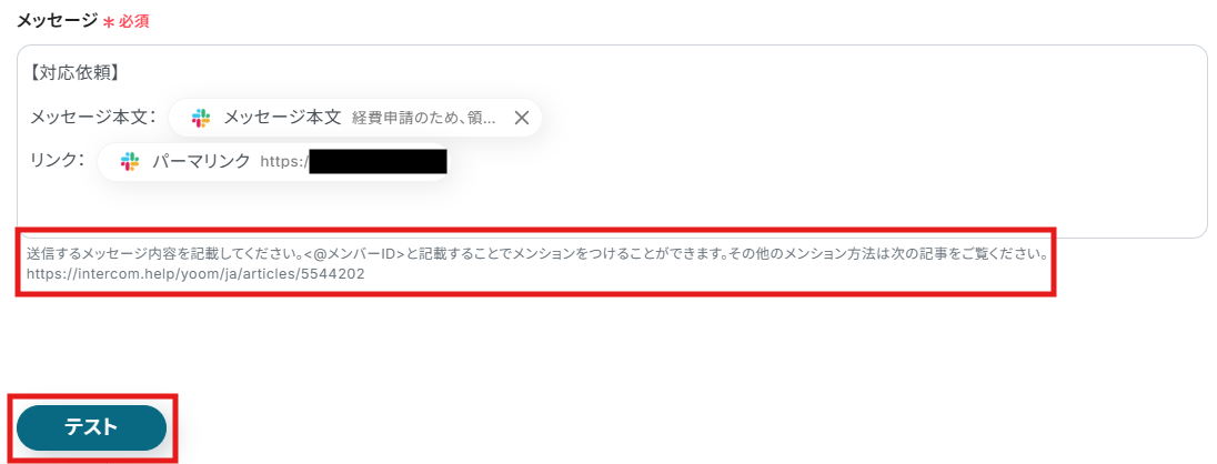 メッセージを送信したら、Yoomの操作画面に戻り、テストを実行してください。
