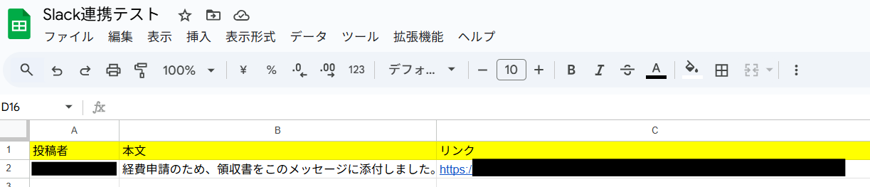 メッセージのリンクも記録しておくと、Google スプレッドシートからワンクリックでSlackの該当投稿を開けます。