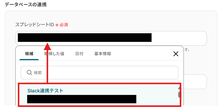 編集欄をクリックすると、Google スプレッドシートの候補が表示されるので、連携したいGoogle スプレッドシートを選んでください。