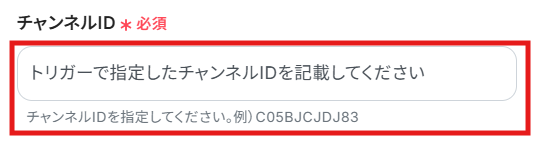 次にトリガーとなるメッセージが投稿されるチャンネルIDを入力します。
