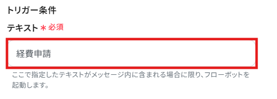 フローボット起動のトリガー条件に指定するキーワードを設定してください。