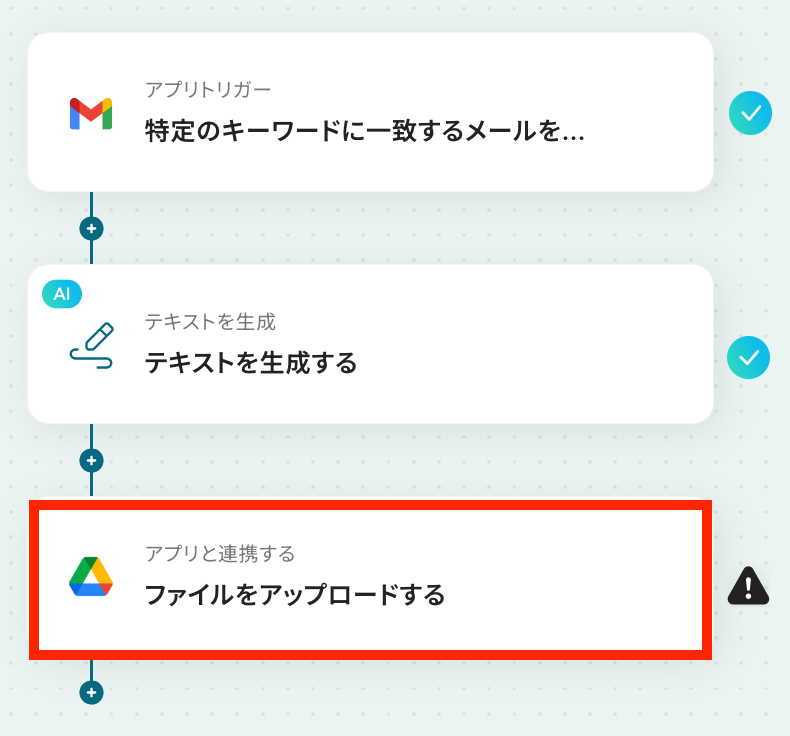 それではここから代表的な例として、Gmailで添付ファイルを受信したら、ファイル名を指定の規則に沿って自動で変更し、Google Driveにアップロードするフローを解説していきます!
