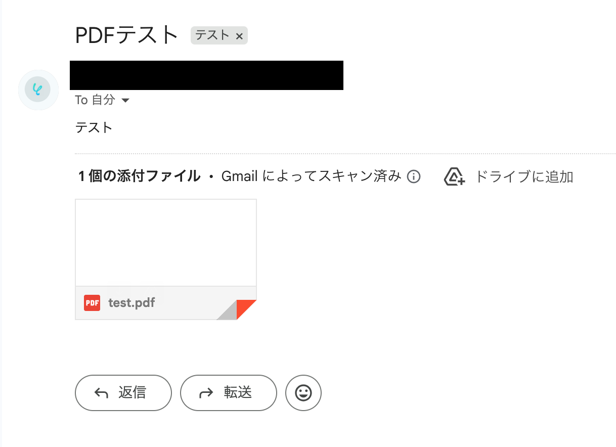 事前にテスト用メールを用意しましょう。今回は、以下のようなメールを受信しました。