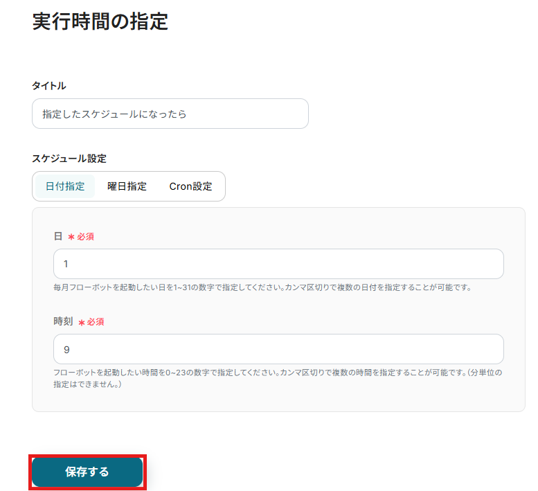 2) あらかじめ毎月1日の9時に起動される設定になっています。