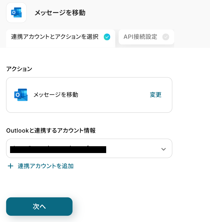 - Outlookのメール移動アクションでは、移動先のフォルダを任意で設定可能です
