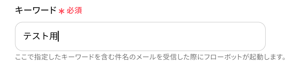 ※ここで指定したキーワードを含む件名のメールを受信した際にフローボットが起動します。