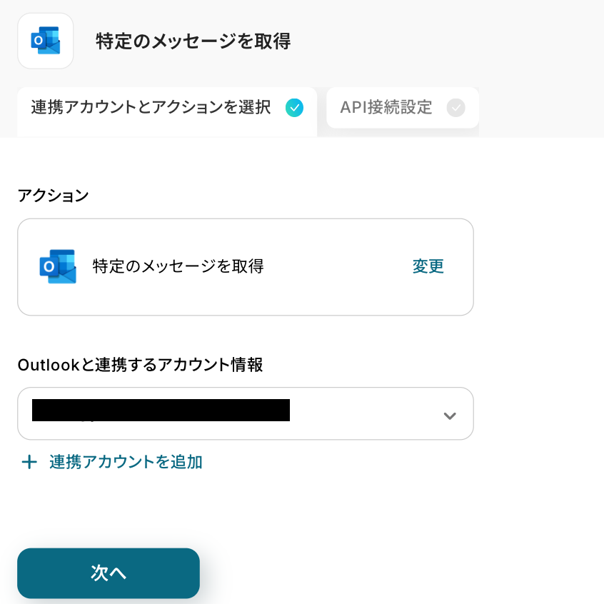 アクションはそのままで、連携するアカウント情報が間違っていないか確認します。