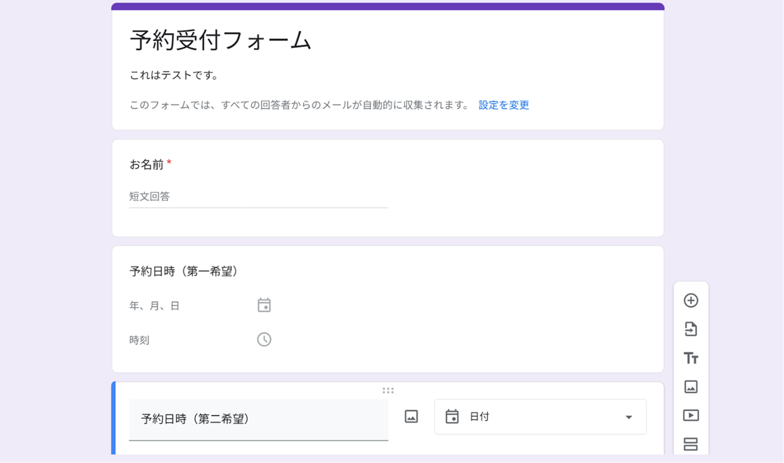 始める前に、予めGoogle フォームに専用のフォームを作成しておきましょう!