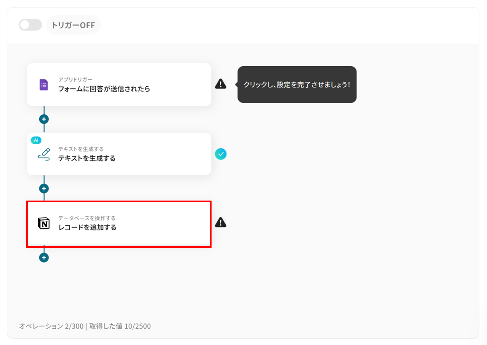 ステップ5:Notionと連携し、レコードを追加する