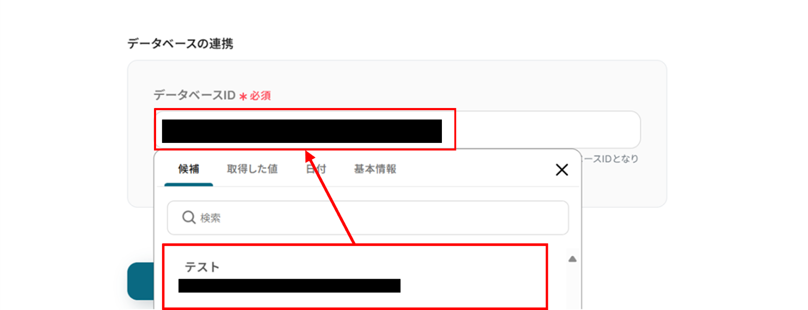 下へ進み、データベースIDを候補から選択します。