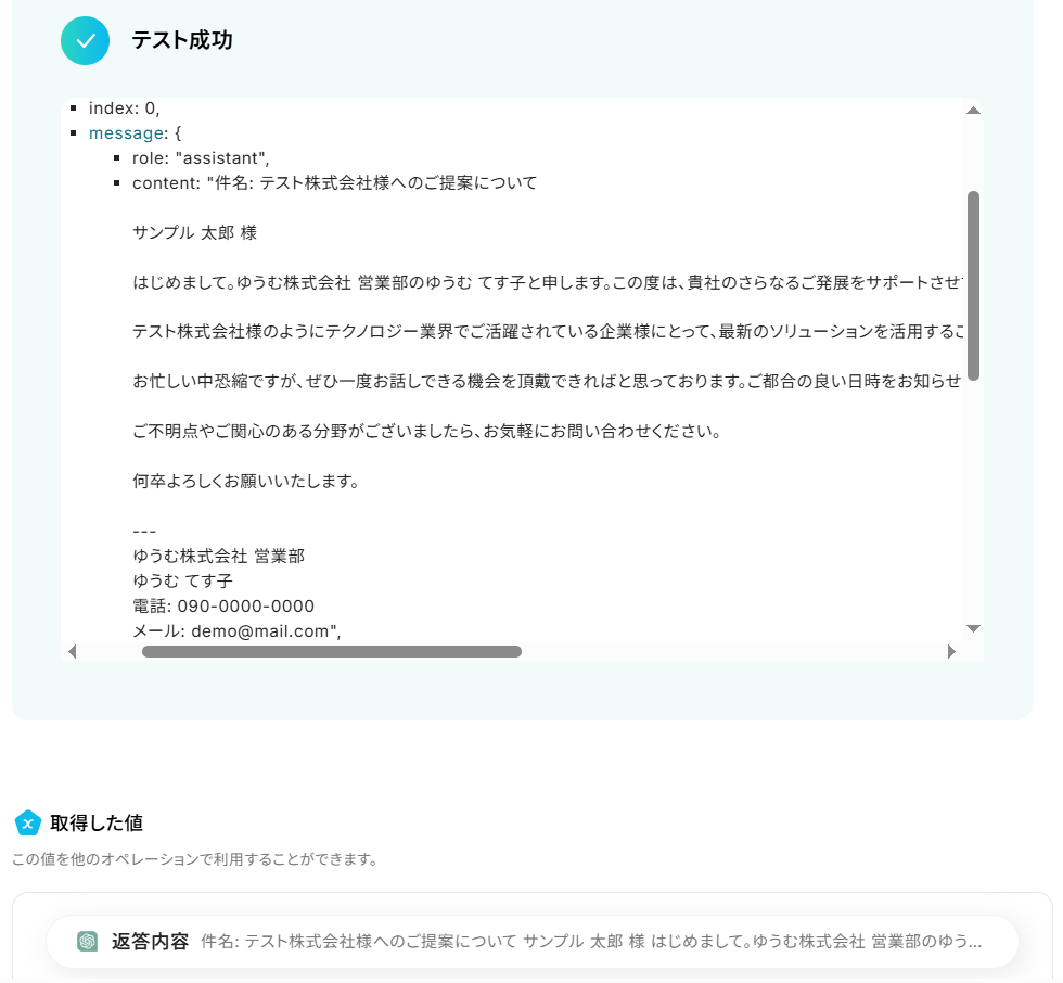先ほど取得したリード情報をもとに、ChatGPTで紹介メッセージを生成します。