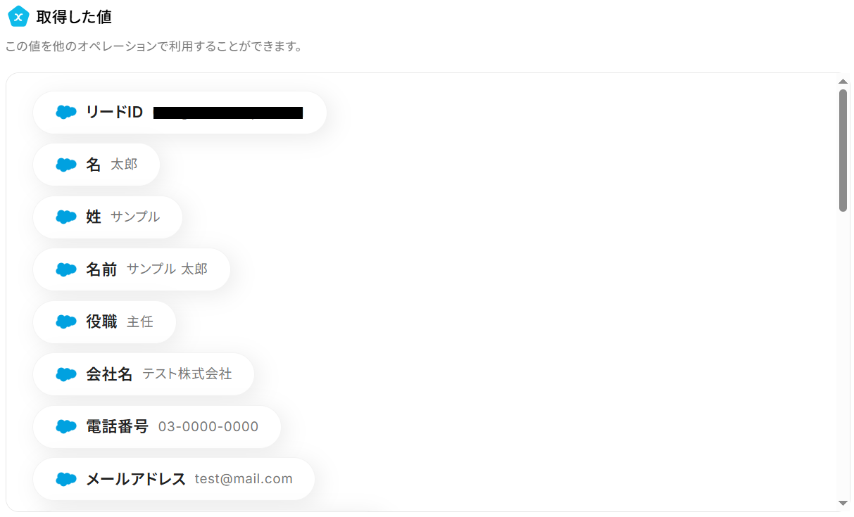 ※以下のように取得した値を設定することで、トリガーが実行されるたびに最新のリード情報を反映できます。
