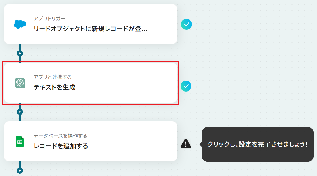 ステップ1:Salesforce、ChatGPT、Google スプレッドシートのマイアプリ連携