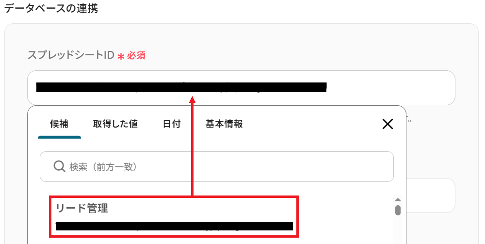 次に、先ほど用意したシートのスプレッドシートIDを候補から選択しましょう。