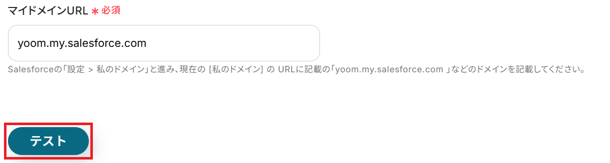 - Salesforceとの連携設定では、ご利用の環境に合わせた任意のマイドメインURLを設定してください