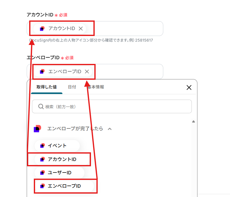 ・Docusign、Google DriveのそれぞれとYoomを連携してください。