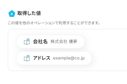 今回は「会社名」と「アドレス」を抽出するように設定してみました。