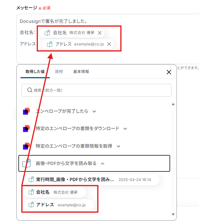 DocuSignで契約が完了したら、書類をOCRで読み取りGmailでメールを送信する