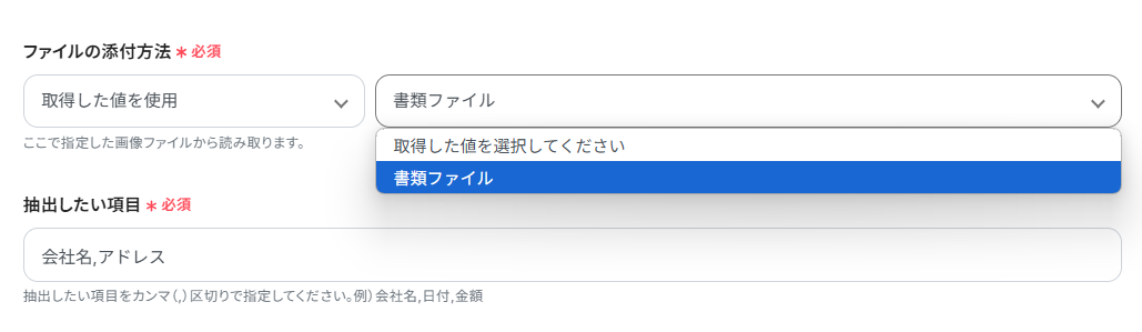 ※YoomのOCR機能では、アクション記載の規定の文字数を超えるデータや、文字が小さすぎる場合に正しく読み取れないことがあります。文字数や文字の大きさには少し余裕を持たせてご利用ください。
