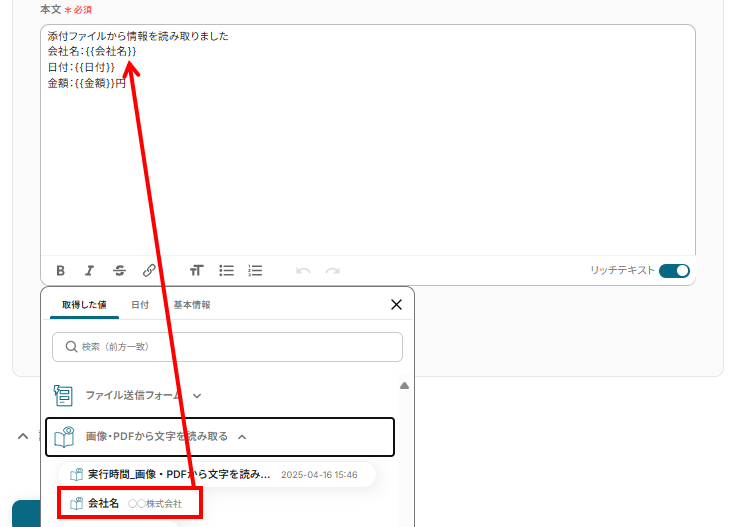 OCRを活用すれば、これらのファイルを自動で読み取り、必要な情報を抽出してGmailで通知したり、他のシステムに連携したりすることが可能になります。
